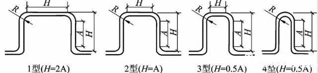 方形补偿器通常是由四个90°无缝钢管煨弯或机制弯头构成的U型补偿器,依靠弯管的变形来补偿管段的热伸长。方形补偿器制造、安装方便,不需要经常维修,补偿能力大,作用在固定点上的推力(即补偿器的弹性力)较小,可用于各种压力和温度条件,缺点是补偿器外形尺寸大,占地面积多。为了提高补偿器的补偿能力(或减少其位移量)常采用预先冷拉的办法,一般预拉伸量为保温管道伸长量的50%。在极限情况下,其补偿能力可比无预拉时提高一倍。图三是计算钢制方形补偿器的线算图,图四是方形补偿器的类型图。